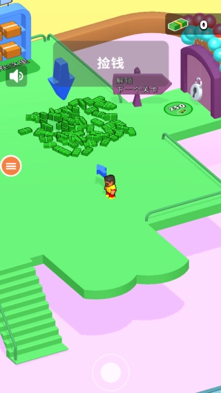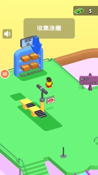 控制角色走到滑梯处,消耗钞票解锁第一个滑梯。