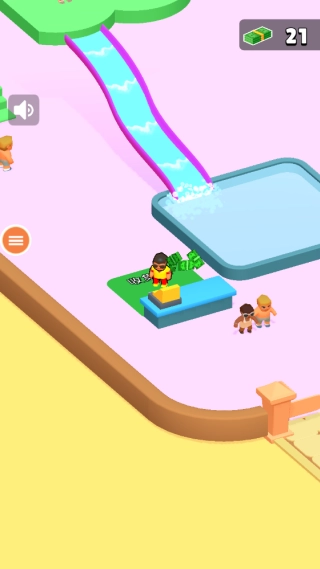 通过持续积攒金币,能够逐步扩大乐园的规模、开启新设施的解锁,打造出更为完备的水上娱乐场地。