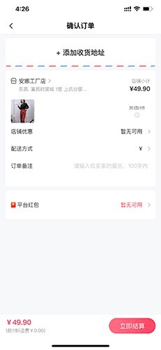 4、用户需添加自身收货地址,接着点击立即结算,完成付款后,只需等待卖家发货即可!