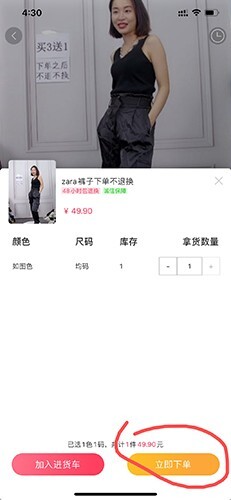 3、用户能够点击立即下单。
