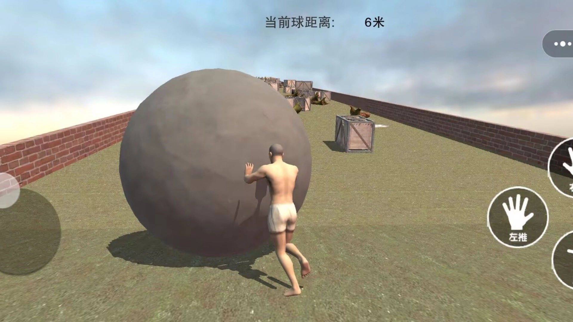 通过虚拟按键操控角色推动石球,左右滑动调整方向,引导石球顺着路径向上滚动。