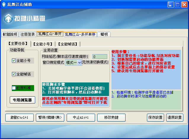 本辅助分为单开和多开单停功能,以下为无限多开版启动方法:1、点界面启动按钮一下