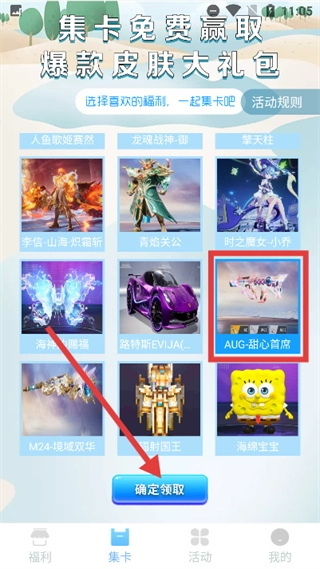 2、在集卡页面,选择喜欢的福利,进入该福利的领取界面。