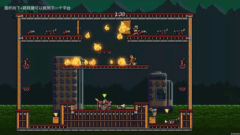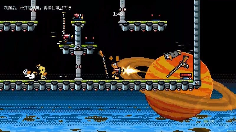 游戏采用2D马赛克像素风格构建,以平面暗黑的背景与地形,为玩家呈现出复古红白机般的玩法与画面,满溢怀旧氛围;玩家通过第三人称视角操作,能更便捷地掌控鸭子的行动。