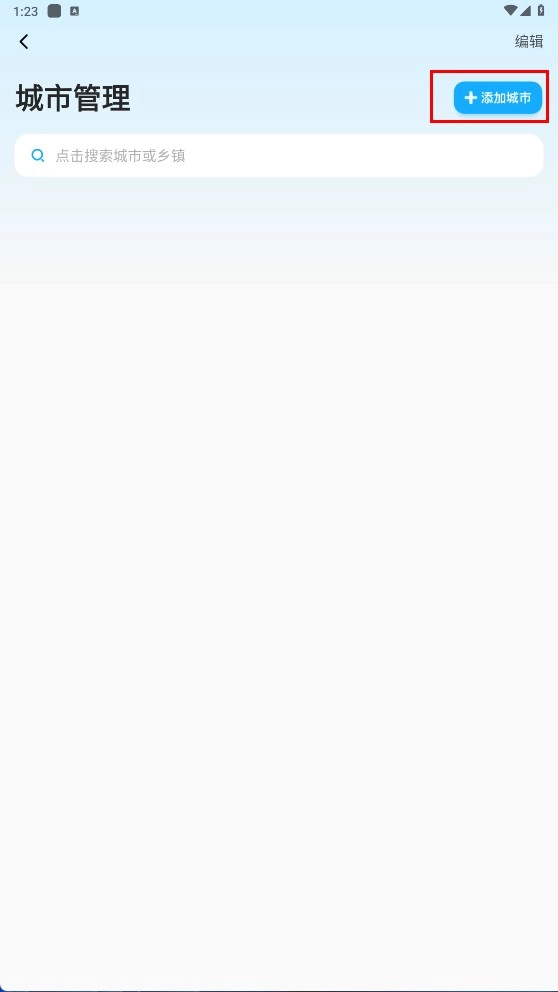 1、进入城市管理页面后,点击【+添加城市】按钮,即可搜索并添加想要的城市,对关注的城市列表进行管理。