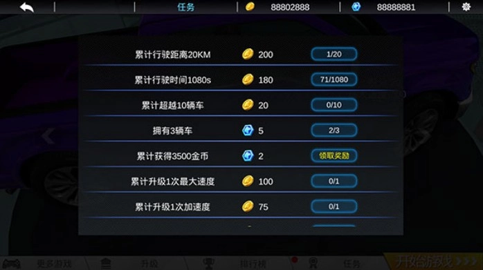 游戏的操作十分简单,玩家可借助重力感应与按键这两种不同操作方式,挑选自己的爱车,在多样的道路和背景里驰骋;需要留意的是,得小心控制车辆,避免和道路上的其他汽车或障碍物发生碰撞。