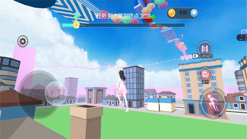 玩家操控美少女在校园里跑酷,借助跳跃、滑行、转弯等动作避开障碍物,维持前进的节奏。