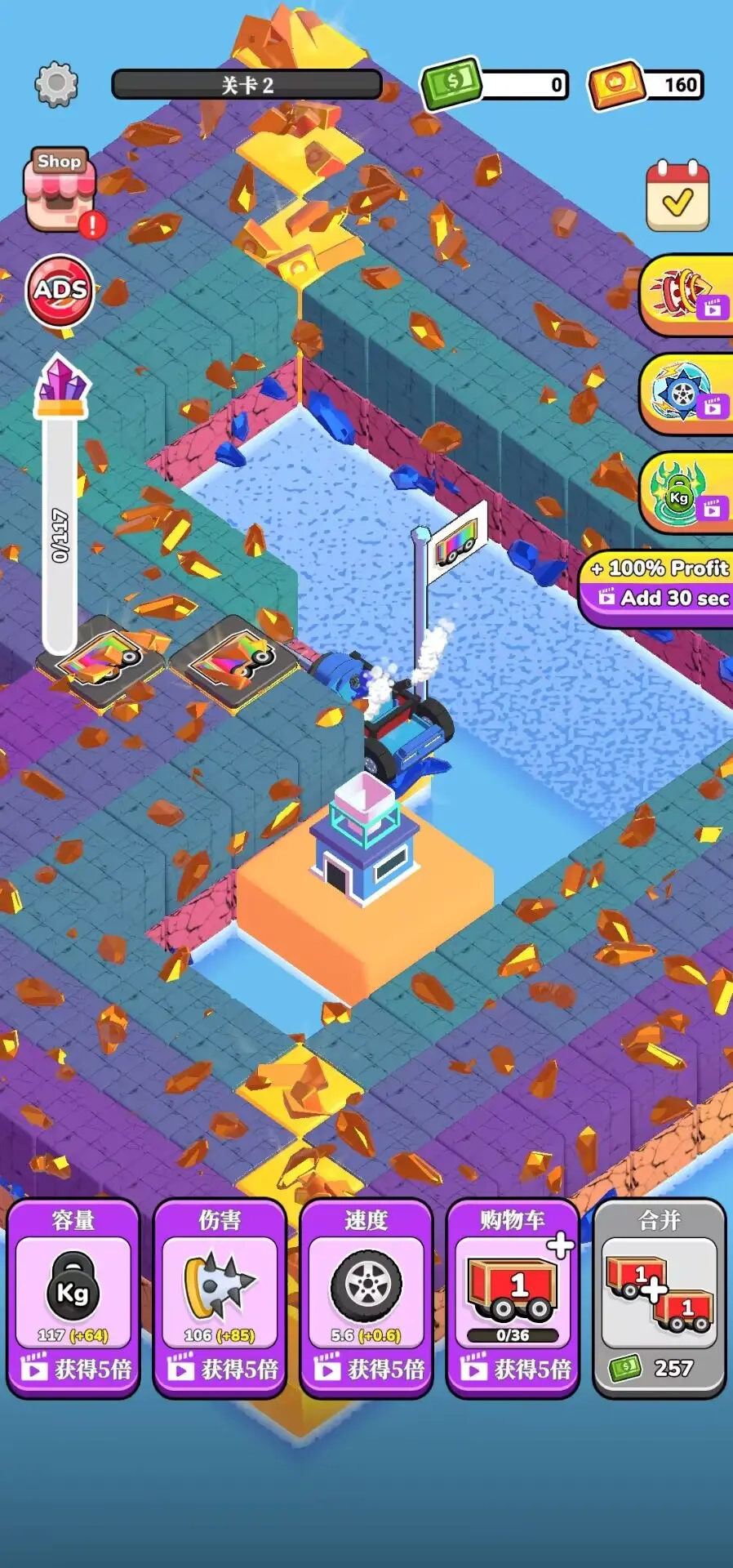 每个关卡都设定了清晰的目标,一般是清理掉地图上的全部方块,同时收集规定数量的资源。