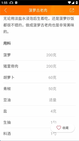 2、进入之后,我们选择一个菠萝古老肉。
