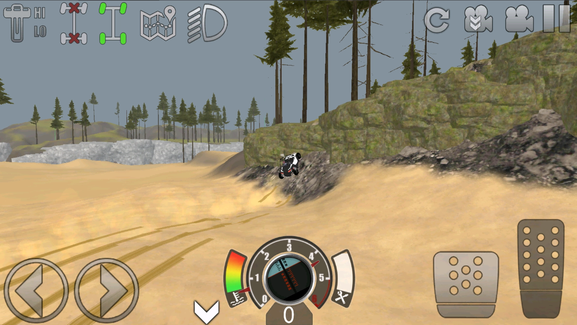 左手的虚拟摇杆用来控制车辆方向,右手的按键则分别负责油门和刹车的操作。这套操作方式简单易上手,不过需要双手精准配合,这样才能防止车辆出现侧翻或者打滑的情况。
