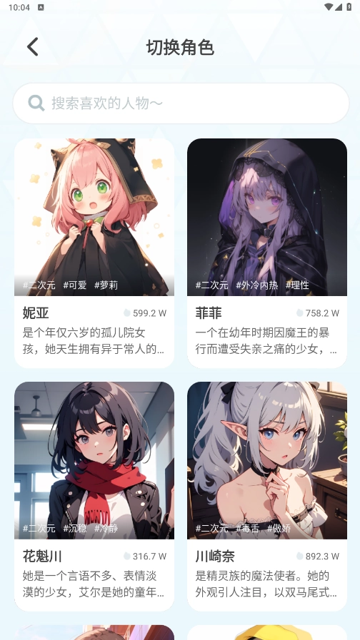 2、通过搜索或推荐,添加虚拟人物好友并开始互动聊天。