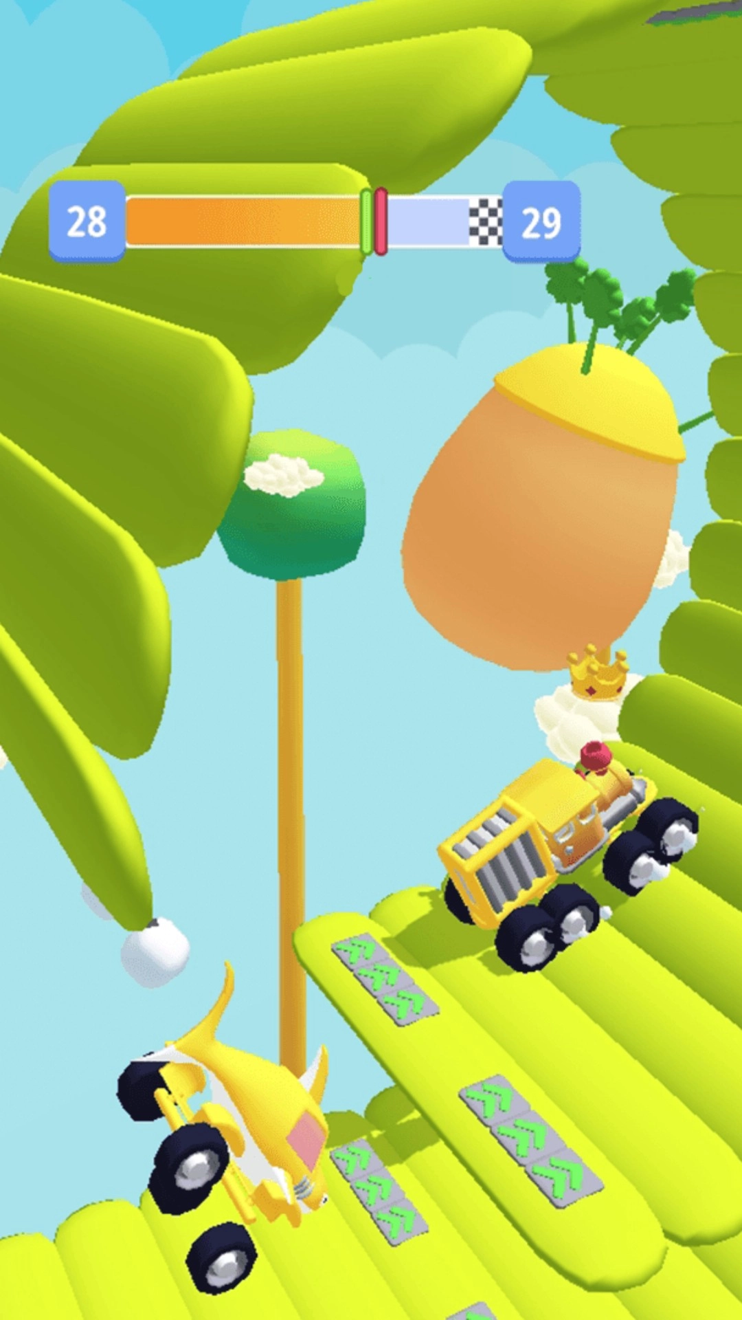 选择赛道进入游戏,赛车可自动行驶或由玩家手动操控,过程中需躲避各类障碍、飞越坡地,系统会根据完成比赛的时间进行评级,达到对应评级后可解锁新的零件与赛道。