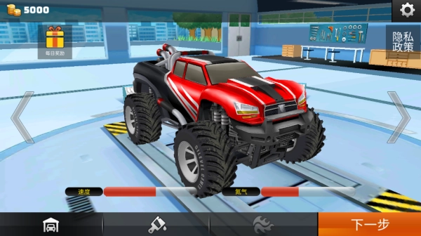 在规定时间内冲过终点线并收集到指定数量的星星,就能获得金币奖励,这些金币可用于升级车辆的引擎、涡轮、轮胎等部件。