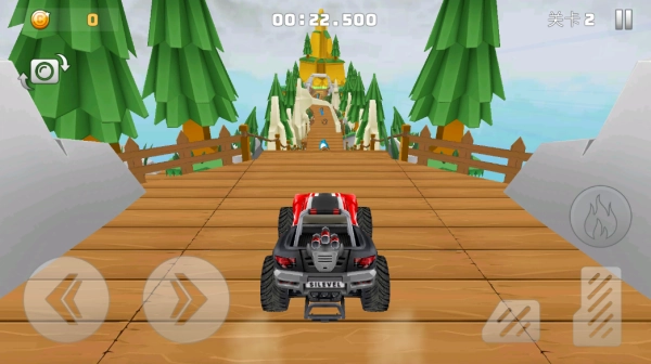 进入游戏后,挑选你喜爱的越野车和想要挑战的关卡,然后操控车辆在赛道上飞速疾驰。