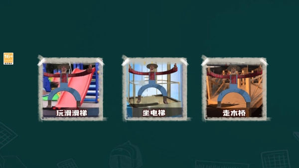 拥有玩滑滑梯、坐电梯以及走木桥等三种模式可以选择挑战。不同模式有着不同的任务要求。