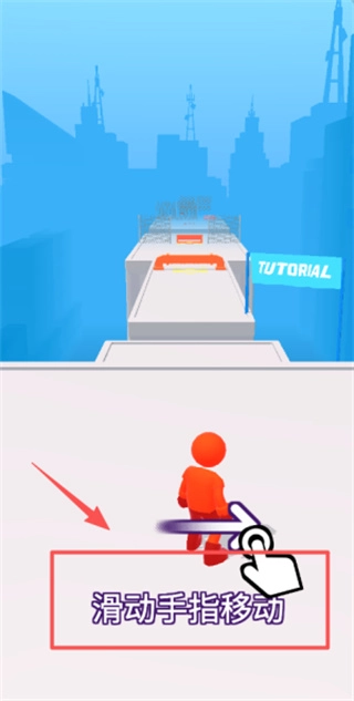 根据红色箭头指示的移动方向,你可以通过滑动屏幕来操控橙色小人灵活移动,底部的文字会实时呈现具体的操作指引。