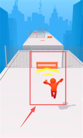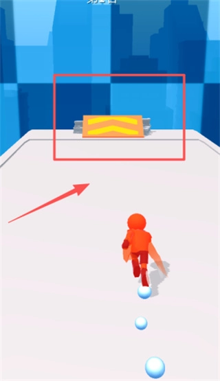 根据红色箭头所指的障碍物位置,迅速滑动手指来操控小人,避开黄橙相间的条纹障碍物。
