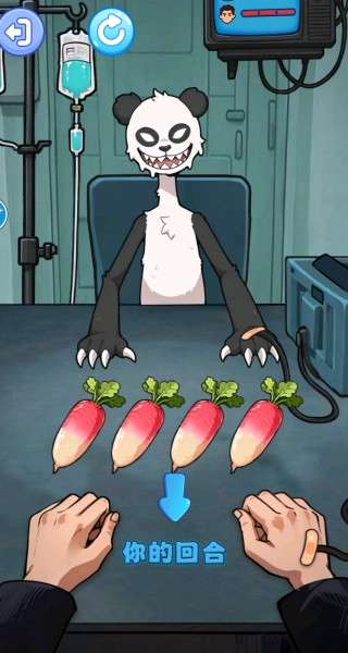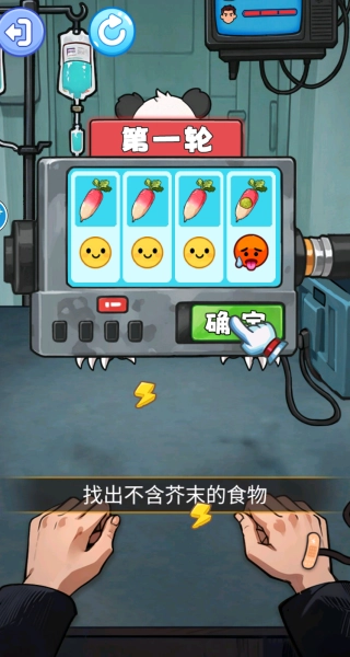 轮到自己行动时,要留意桌面上摆放的食物(比如萝卜),必须从这些选项里选择没有芥末的食物,这是确保自己在本轮中存活下来的关键步骤。