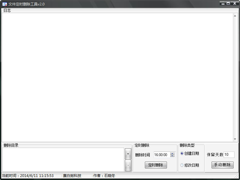 修改配置文件config.ini,dir是主目录;dirs是要删除文件目录;deltype是删除类型,0是创建日期,1是修改日期;delday是保留天数;deltime是定时删除时间。
