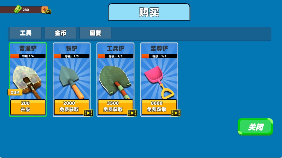 商店里能买到不同等级的铲子,玩家得用金币尽快给铲子升级,这样才能拥有更棒的挖掘体验。