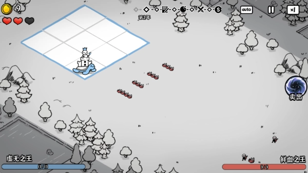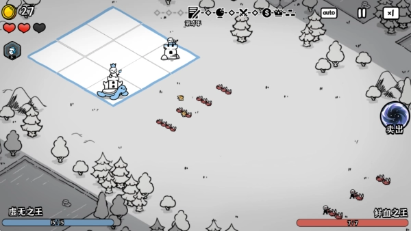 点击放置新卡牌,击退一波波来袭的怪物,战斗获胜后解锁新卡牌并提升防御等级。