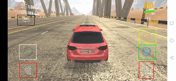 红色方框里的按钮是刹车,尽管不能让车辆彻底停下,却能起到有效降低车速的作用;白色方框中的按钮控制汽车灯光;绿色方框内的按钮负责加速;黄色方框里的按钮可实现时间减慢;黑色方框中的按钮则用于改变汽车视角。