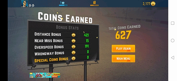 操作失误导致失败后,你可以选择重新挑战(play again),也可以返回主菜单(main menu);要是多次尝试都没成功,就得补充助力了——左边的按钮能通过观看广告获取加油机会,你也可以选择付费充值来加油。