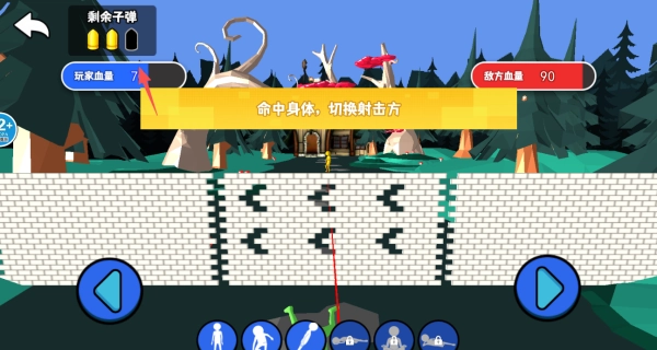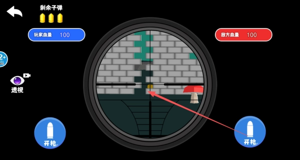 随时留意左上方显示的剩余子弹数和双方生命值,依据战局的实时变化来调整射击节奏与躲避方式,力求在三发子弹内赢得胜利。