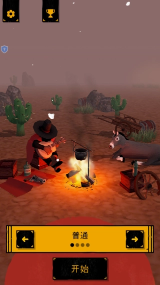 进入游戏后,可选择普通、困难等不同难度模式,以初始配备的左轮手枪和少量子弹为起点,开启在西部荒野的生存冒险之旅。
