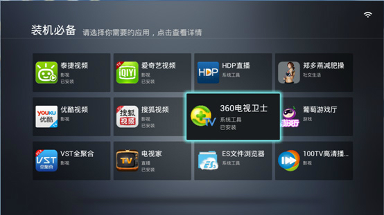 海量资源 一键安装360电视助手除了自有软件、游戏宝库外,还与当贝市场应用商店合作,提供超过数百款电视应用,一键下载安装。