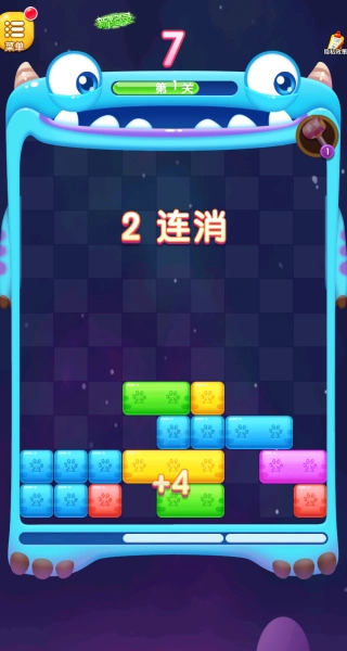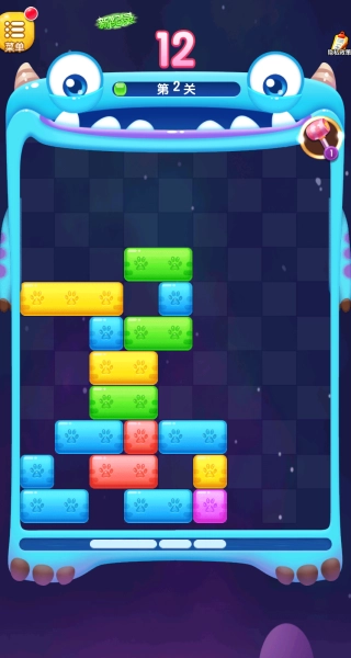 进入关卡后,要留意底部等待放置的方块,借助滑动操作把方块移动到网格里面,优先把某一行的空位填满,当一整行都被方块填满时就能触发消除效果。