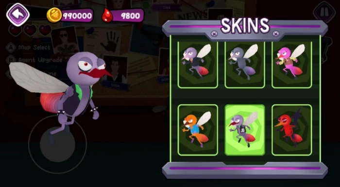 在蚊子特工游戏安卓最新版本里,玩家能够解锁或者升级蚊子的各项能力,比如触发抗性技能来防止被杀虫剂喷到,亦或是提高飞行速度以躲开电蚊拍。