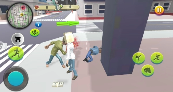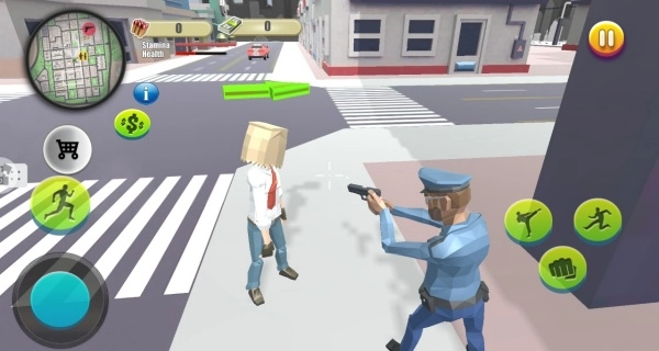 通过屏幕左侧的虚拟摇杆来控制角色,在城市的街道里自由地进行探索与移动,同时要留意远处那些可能携带武器的敌人。