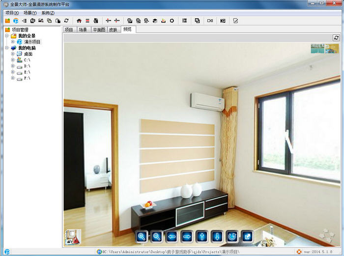 全景大师一款360度三维全景漫游展示制作软件,效果时尚逼真。并非简单的照片拼接软件,是真正意义上的全景大师。主要用于将一系列普通的全景照片制作成一套完整的全景展示系统,最终生成的展示项目可独立运行于各种设备之上,包括:iPhone、iPad、Android手机、Android平板、以及苹果电脑和各种PC上。【软件特点】