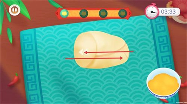接着借助手指的点按、拖拽等操作,模拟真实厨具的使用方式,比如用擀面杖擀制面皮,或是用筷子搅拌馅料。