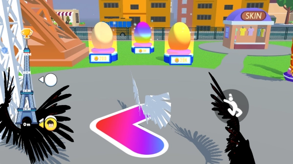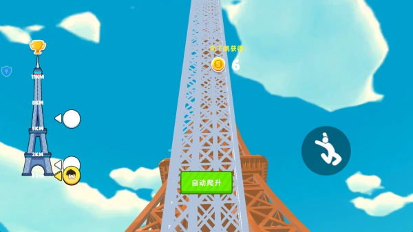 到达高塔顶端后纵身一跃,系统会根据攀登的高度来结算分数,要是体力耗尽时跳下还能得到金币奖励。