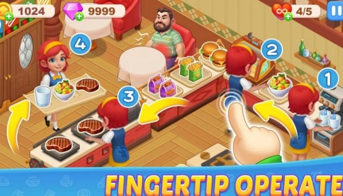 玩家需要快速响应顾客需求,维持高满意度来获取更多金币,这些金币可用于升级餐厅设施、打造顶级餐饮空间,还能解锁全新餐厅,开启一段又一段充满惊喜的烹饪新旅程。