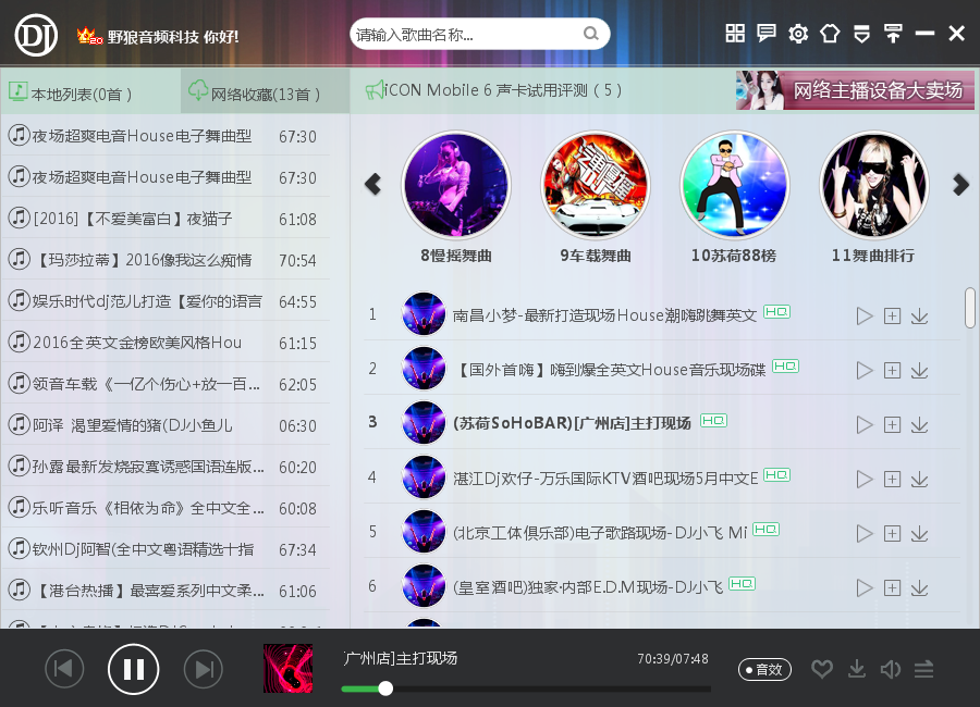野狼DJ音乐盒2014是一款免费在线DJ播放器,里面有超多各种风格的DJ舞曲,是一款非常好用的高音质DJ音乐盒软件,串烧舞曲、英文舞曲、电音舞曲、慢摇舞曲等等,资源丰富而且即点即播,无需下载。