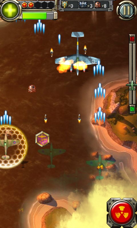 1、这款射击游戏以相当优秀的画面,以及爽快的射击感,让玩家体验到了单火纷飞的天空战场的魅力。