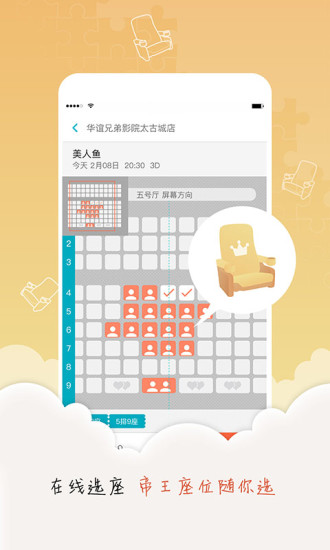 1.支持预约购票功能,想什(怎)么(么)时(任)候(性)看电影就什(怎)么(么)时(任)候(性)看电影