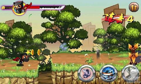 作为一个忍者,必然少不了的就是忍术了!游戏中有大火球术、分身术和旋风斩三种忍术。你以为游戏一开始就能使用这些忍术么?那你就大错特错了。除了大火球术这种最近本的忍术,其他两个忍术都是需要在游戏中获得卷轴来学习的,获得方式嘛,就要靠小伙伴们去寻找啦,这里小编就不能多做介绍啦!