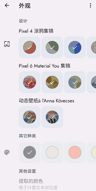 2.外观里有涂鸦集锦、动态壁纸等,还能提取颜色。