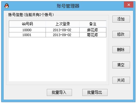 『批量导出』:可以导出已添加的帐号和密码作为备忘查看或以后批量导入号码。