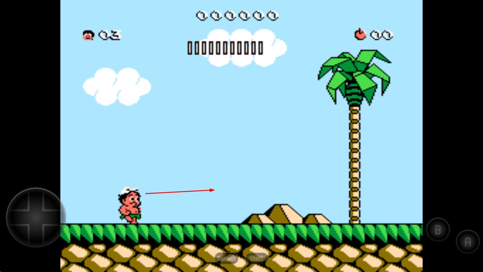 1. 开启游戏后,操控小人于地图内展开探索,通过收集水果来维持生命条。同时,借助石斧头以及恐龙能力对怪物发起攻击,就此开启一场冒险之旅。