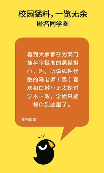 - 查看来自好友的真实内心独白- 查看来自学校、公司的匿名八卦