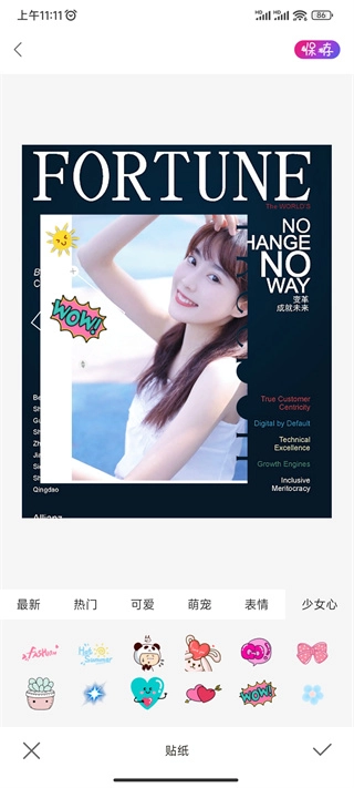 6、如果你想要让照片的内容更加丰富,可以选择你想要的贴纸,让照片拥有不一样的效果;