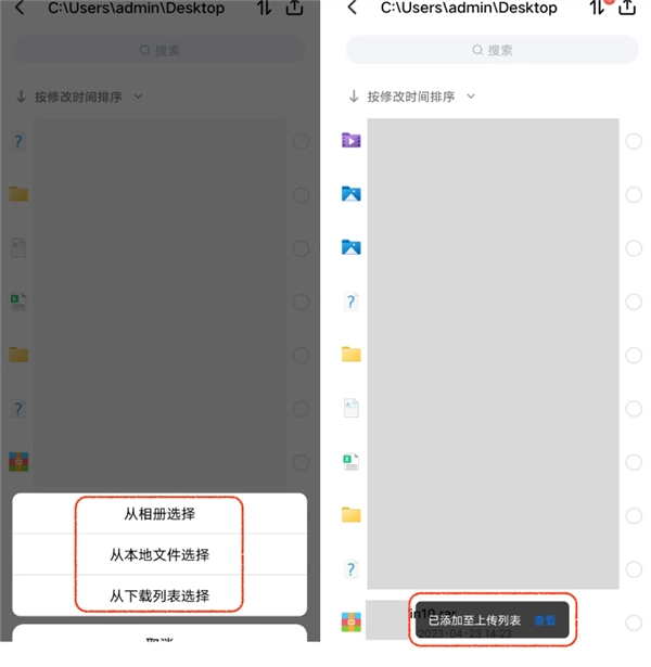 2、从手机本地选择文件,上传到该文件夹