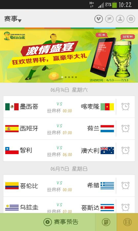 3、新增活动专区,参与投票竞猜并评论,即有机会赢红米和冠军杯。