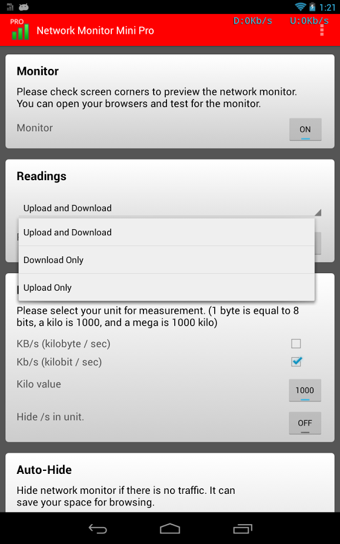 Network Monitor Mini是一款专为安卓用户提供的手机测网速软件,可以实时显示网络上传和下载速度,当感觉手机网络很卡的时候就可以使用这款软件来测下速度。