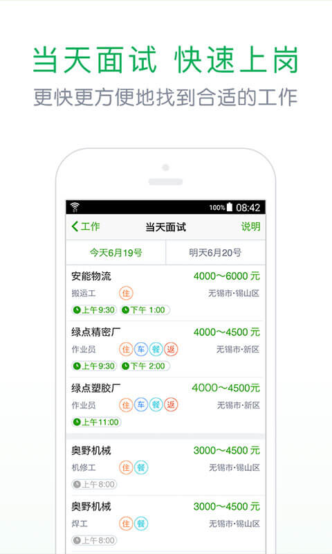 我们为您提供了数千家企业上万个普工、操作工以及其他岗位的招工信息,当天求职、当天面试、当天进厂,为您提供最快捷的求职服务。